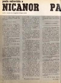 Paula entrevista a Nicanor Parra, el antipoeta [artículo] / Amanda Puz. Paula (Revista : Santiago, Chile) Número 28 (Enero 1969), páginas 36 - 43 y 125. 9 páginas : ilustraciones en blanco y negro ; 28 cm. .