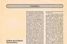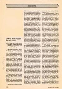 Crítica de la Razón Tecnocrática [artículo] / Arturo Gaete. Mensaje (Revista : Santiago, Chile)-- no. 408 (mayo 1992), página 152 y 153. 2 páginas ; 28 cm. .