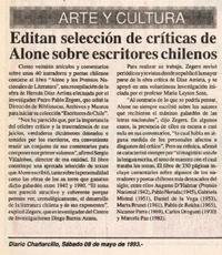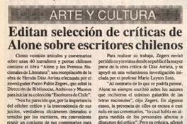 Editan selección de críticas de Alone sobre escritores chilenos [artículo]. Chañarcillo (Diario : Copiapó, Chile)-- mayo 8, 1993, página 2. 1 página ; 12 cm. .