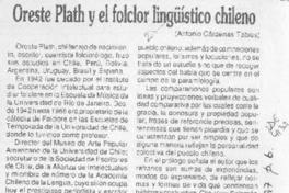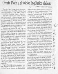 Oreste Plath y el floclor lingüístico chileno [artículo] / Antonio Cárdenas Tabies. La Prensa (Diario : Curicó, Chile)-- oct. 13, 1997, p. 6. 1 página ; 18 cm. .