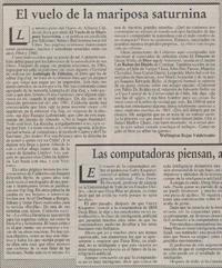 El vuelo de la mariposa saturnina [artículo] / Wellignton Rojas Valdebenito. La Tribuna (Diario : Los Angeles, Chile)-- Mayo 24, 1997, página 3. 1 página ; 13 cm. .