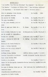 Listado de artículos "Archivo No 6" / Neruda y Stalin / Don Pablo Neruda y una información de nuestro diario / Pablo Neruda -- "Las uvas y el viento", por Pablo Neruda / Francisco Dussuel S. J. -- "Todo el amor de Pablo Neruda" / M. V. -- Trampa para zorzalez / Pablo Neruda / "Dulce patria / Premio Nacional de Literatura / M. A. Alvear -- Premio Nacional de Literatura / Germán Claro González -- Oda Boli-Nerudiana / Por Pablo Neftalí R. --