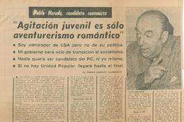 Cónyugue demandó a Pablo Neruda: por alimentos / Violenta respuesta de Betancourt a Pablo Neruda / Luis Valedes Larraín Insiste "En cuanto Pablo Neruda pise tierra chilena entablaré querella criminal en su contra" / Valdes Larrain explica causas de su querella contra pablo Neruda si este regresara al país / Abogan por la amnistia de Pablo Neruda para que regrese al país : aquí lo espera otro proceso judicial / Sintesis de las más importantes noticias de hoy / "Fatewell" en el Senado / Januario Espinosa -- El sabado 16 festejaran a Pablo Neruda /