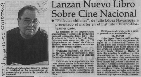 Lanzan nuevo libro sobre cine nacional [artículo].