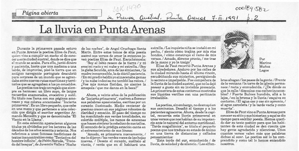 La lluvia en Punta Arenas [artículo] Marino Muñoz Lagos.