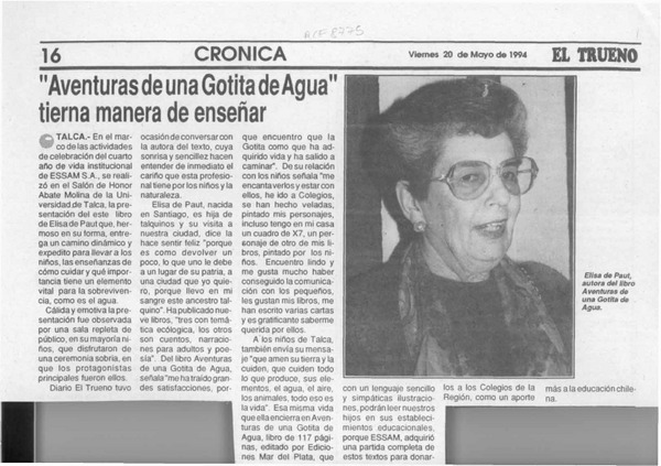 "Aventuras de una gotita de agua", tierna manera de enseñar [artículo].