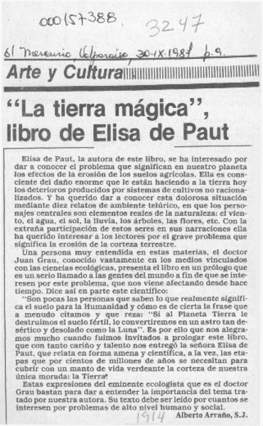"La tierra mágica", libro de Elisa de Paut [artículo] Alberto Arraño.
