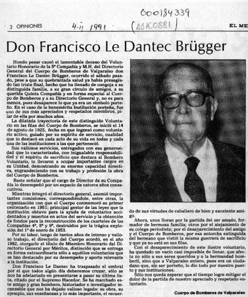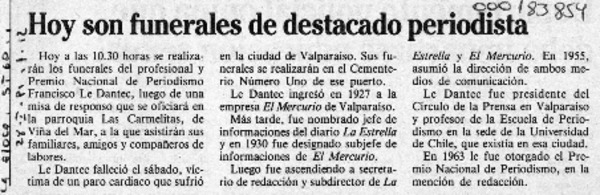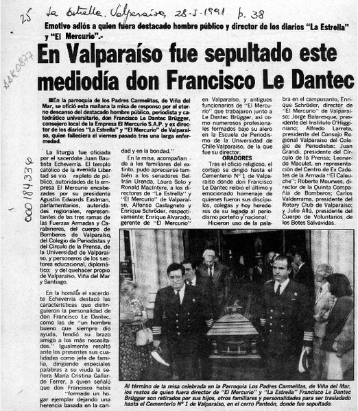 En Valparaíso fue sepultado este mediodía don Francisco Le Dantec [artículo].