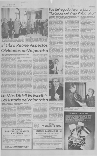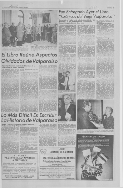 Fue entregado ayer el libro "Crónicas del viejo Valparaíso". [artículo]