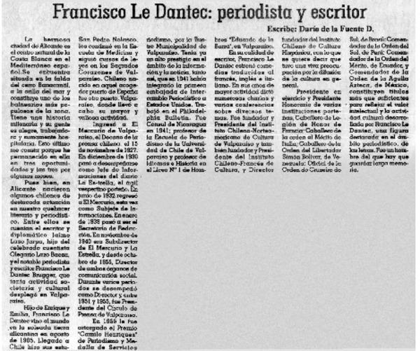 Francisco Le Dantec : periodista y escritor [artículo] Darío de la Fuente.