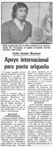 Editada en Arica obra poética que obtuvo el Premio Nacional. [artículo]