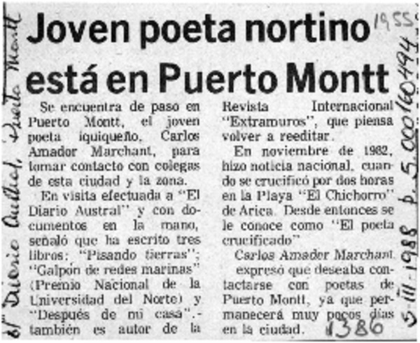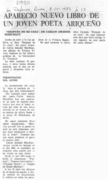 Apareció nuevo libro de un joven poeta ariqueño. [artículo]
