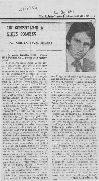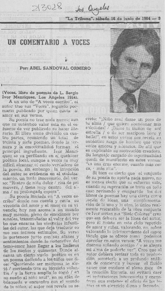 Un comentario a "Voces" [artículo] Abel Sandoval Ormeño.