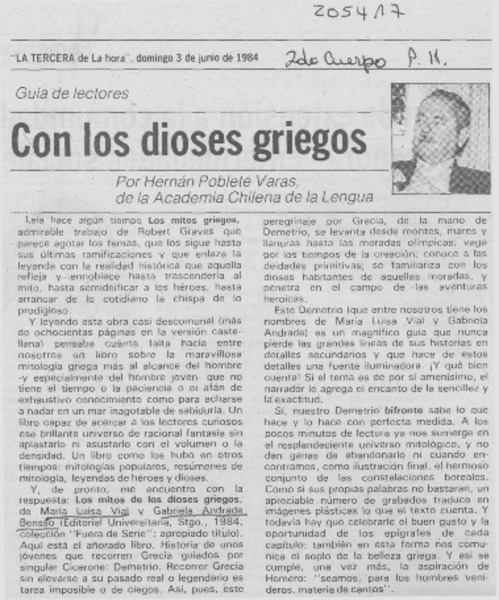 Con los dioses griegos [artículo] Hernán Poblete Varas.