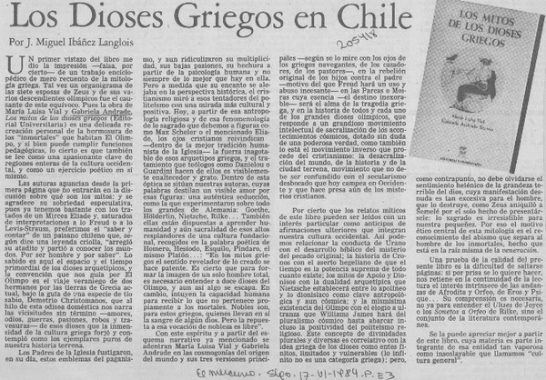 Los dioses griegos en Chile [artículo] José Miguel Ibáñez Langlois.