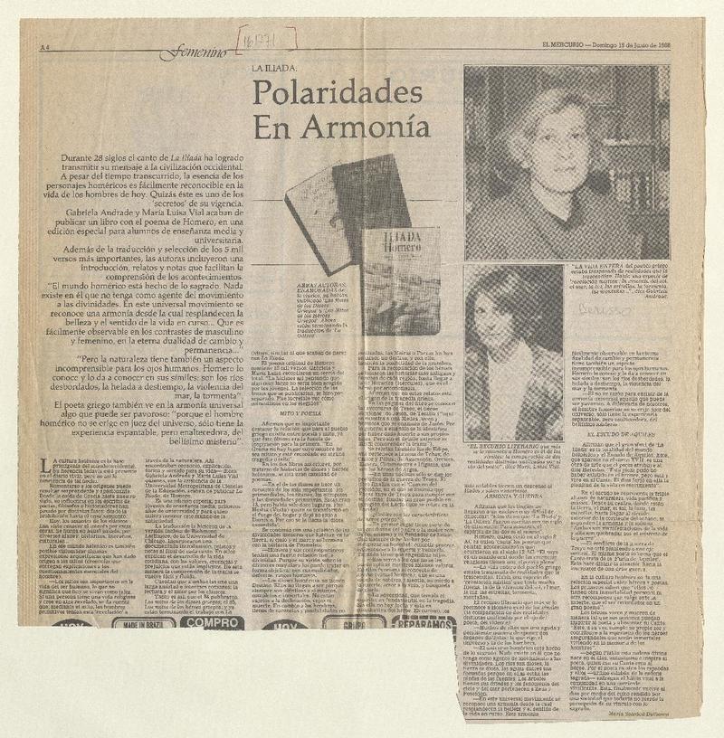 La Ilíada, polaridades en armonía [artículo] María Soledad Dalbosco.