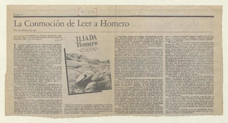 La conmoción de leer a Homero [artículo] Ana María Larraín.