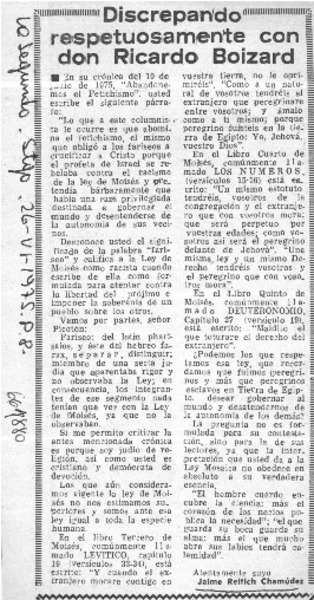 Discrepando respetuaosamente con don Ricardo Boizard [artículo] Jaime Reitich Chamúdez.