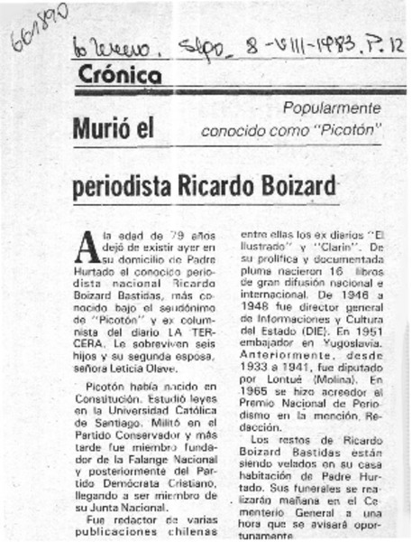 Ricardo Boizard ("Picotón") [artículo] Jorge Arturo Flore.