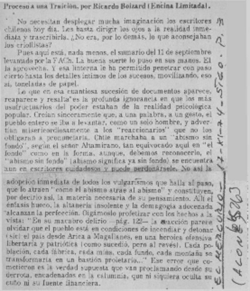 Boizard, Ricardo - Autores chilenos - Proceso a una traición
