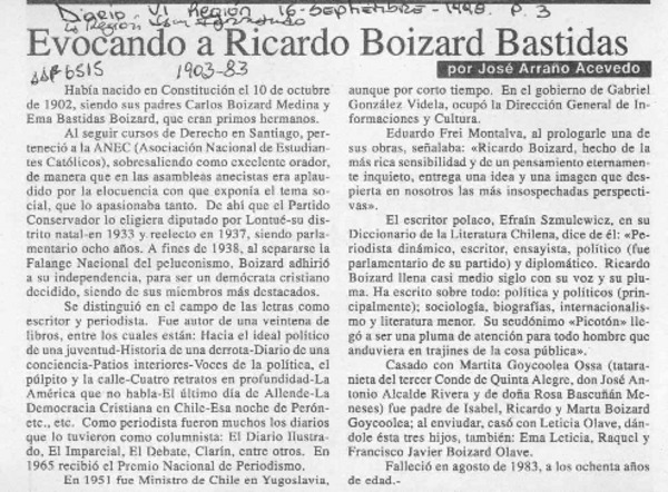 Evocando a Ricardo Boizard Bastidas [artículo] José Arraño Acevedo.