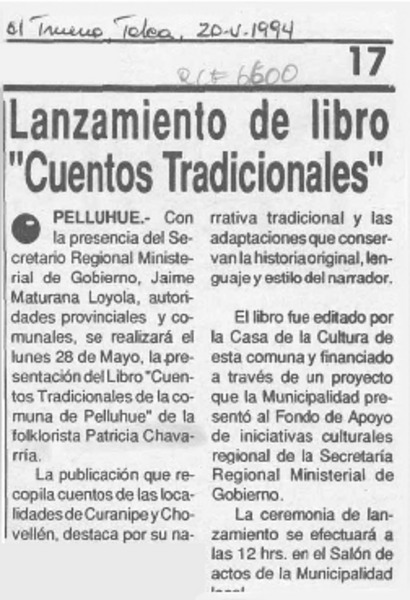 En Pelluhue fue presentado libro de cuentos tradicionales [artículo].