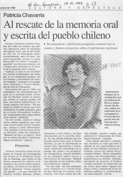 Al Rescate de la memoria oral y escrita del pueblo chileno [artículo].
