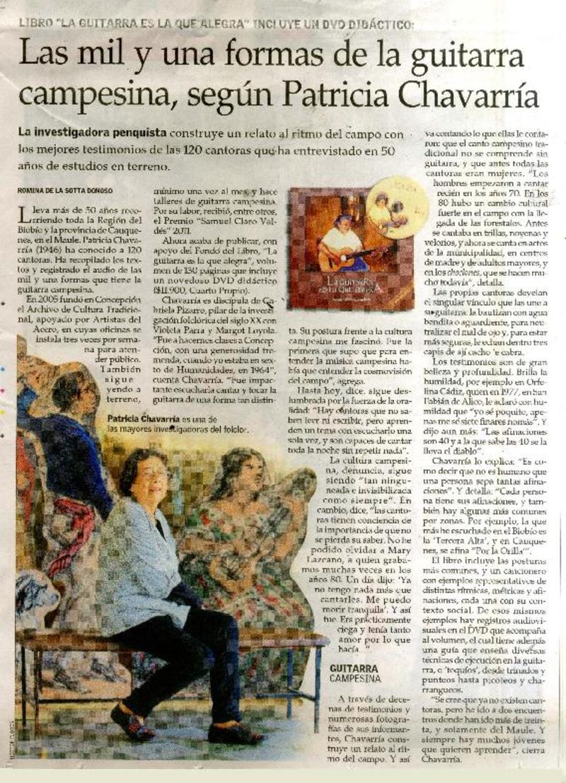 Las mil y una formas de la guitarra campesina, según Patricia Chavarría [artículo] Romina de la Sotta Donoso.