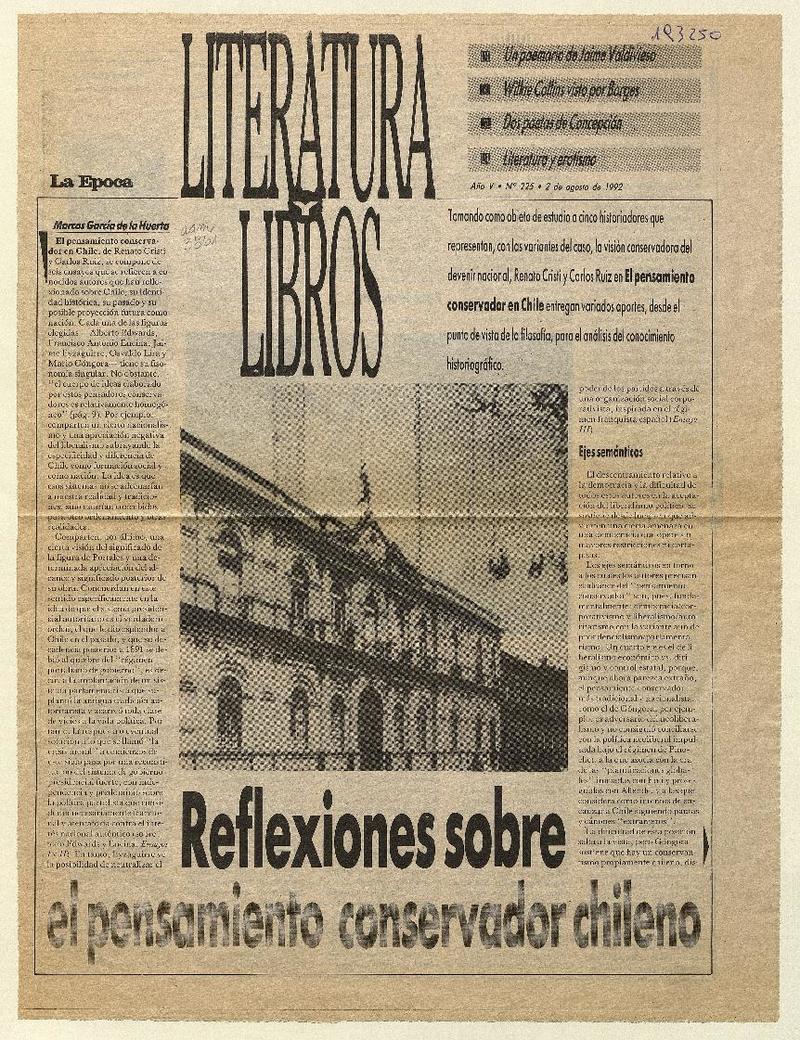 Reflexiones sobre el pensamiento conservador chileno [artículo] Marcos García de la Huerta.