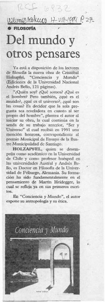 HOLZAPFEL, CRISTOBAL - CONCIENCIA Y MUNDO