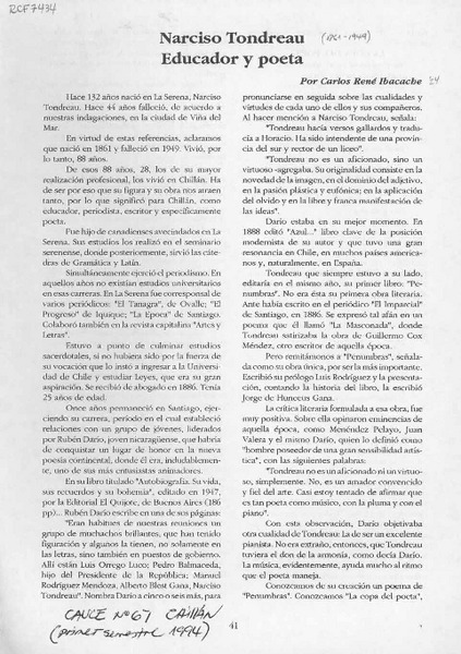 Narciso Tondreau educador y poeta [artículo] Carlos René Ibacache.