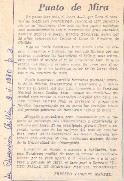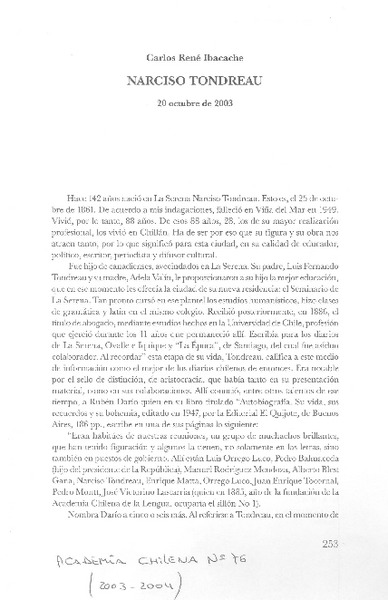 Narciso Tondreau [artículo] Carlos René Ibacache.