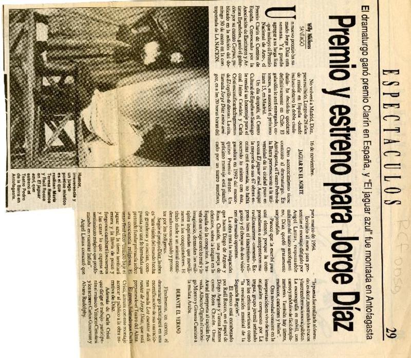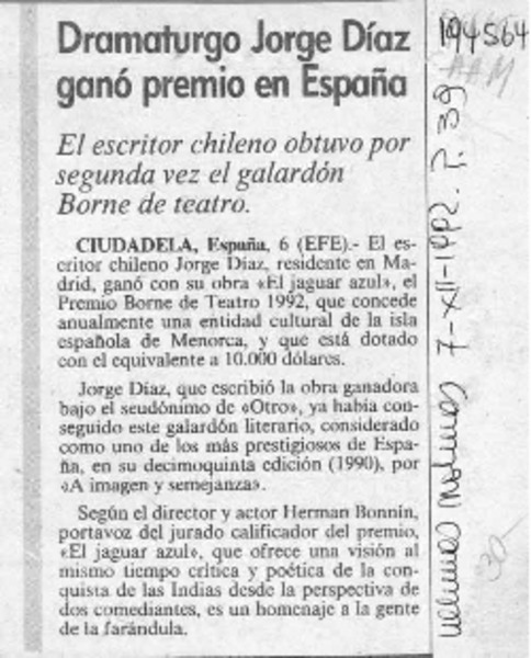 Dramaturgo Jorge Díaz ganó premio en España [artículo].