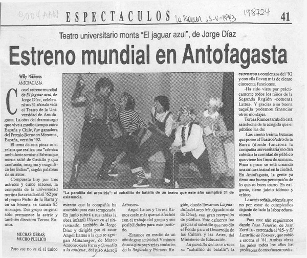 Estreno mundial en Antofagasta [artículo] Willi Nikiforos.