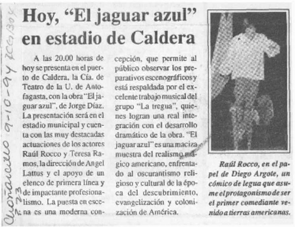 Hoy, "El jaguar azul" en estadio de Caldera [artículo].
