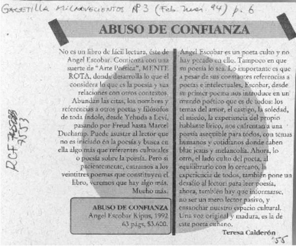 ESCOBAR, ANGEL - Autores cubanos - ABUSO DE CONFIANZA
