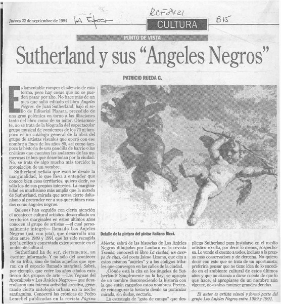 Sutherland habla de sus "Angeles negros" [artículo] Alejandra Gajardo.