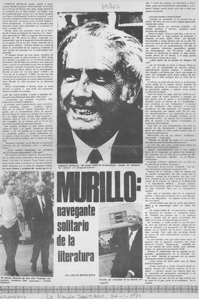 Murillo: navegante solitario de la literatura : [Entrevista] [artículo] Julio Mondaca.