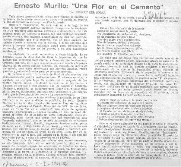 Ernesto Murillo: "Una flor en el cemento" [artículo] Hernán del Solar.