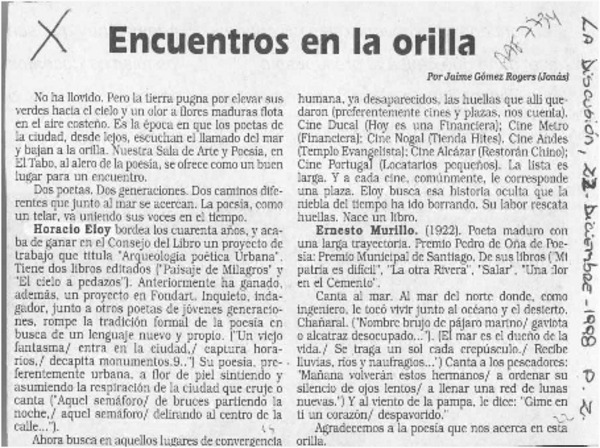 Encuentros en la orilla [artículo] Jaime Gómez Rogers (Jonás).
