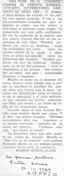 "Una flor en el cemento" [artículo] Marino Muñoz Lagos.