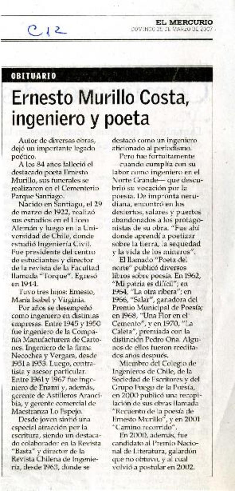 Ernesto Murillo Costa, ingeniero y poeta [artículo].