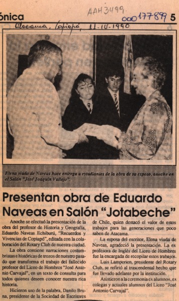 Presentan obra de Eduardo Naveas en salón "Jotabeche" [artículo].