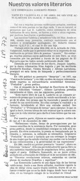 Autoras chilenas - Lüderitz, Luz - Preludios