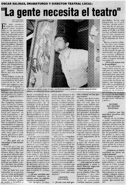 "La gente necesita el teatro" [entrevistas] [artículo] : Yessica Barra.