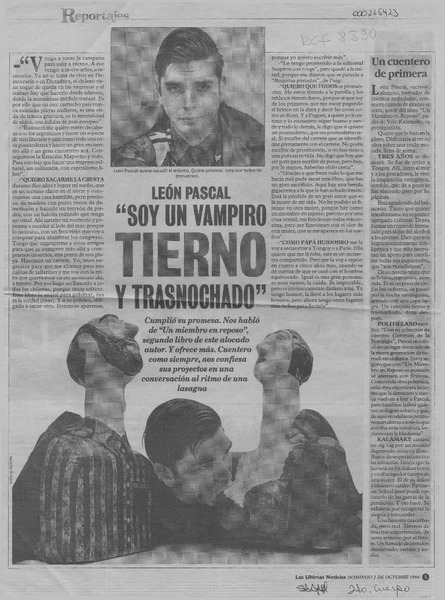 León Pascal "Soy un vampiro tierno y trasnochado" [artículo].
