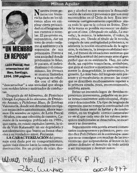 "Un miembro en reposo" [artículo] Milton Aguilar.