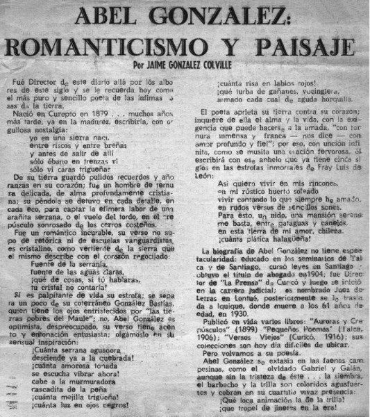 Autores chilenos - González, Abel - Romanticismo y paisaje
