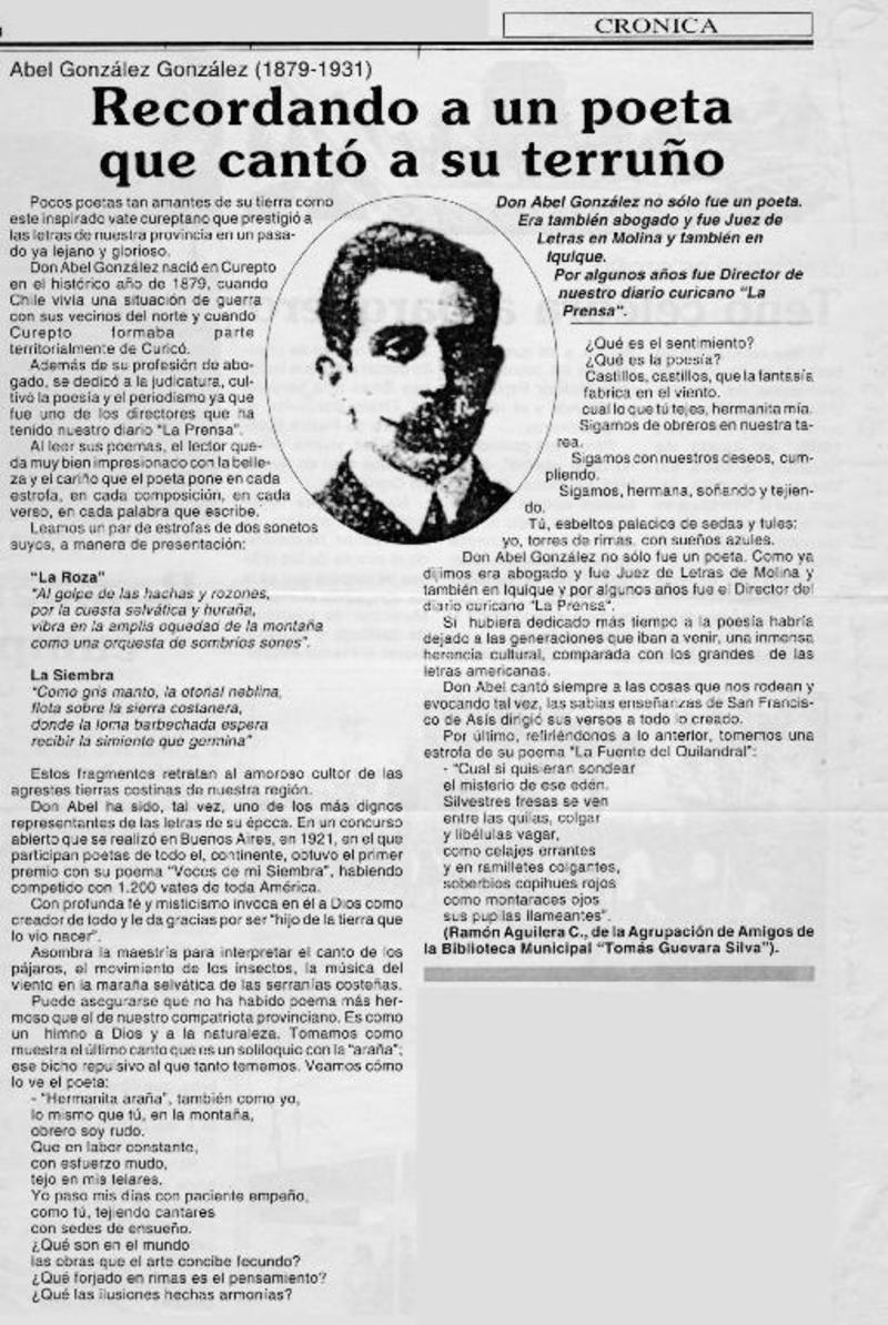 Escritores talquinos rindieron homenaje a poeta Abel González. [artículo]