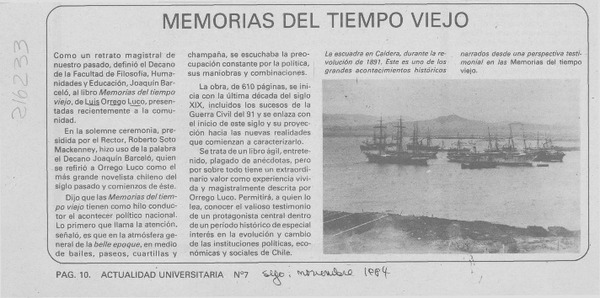 Memorias del tiempo viejo [artículo] Jorge Marchant.